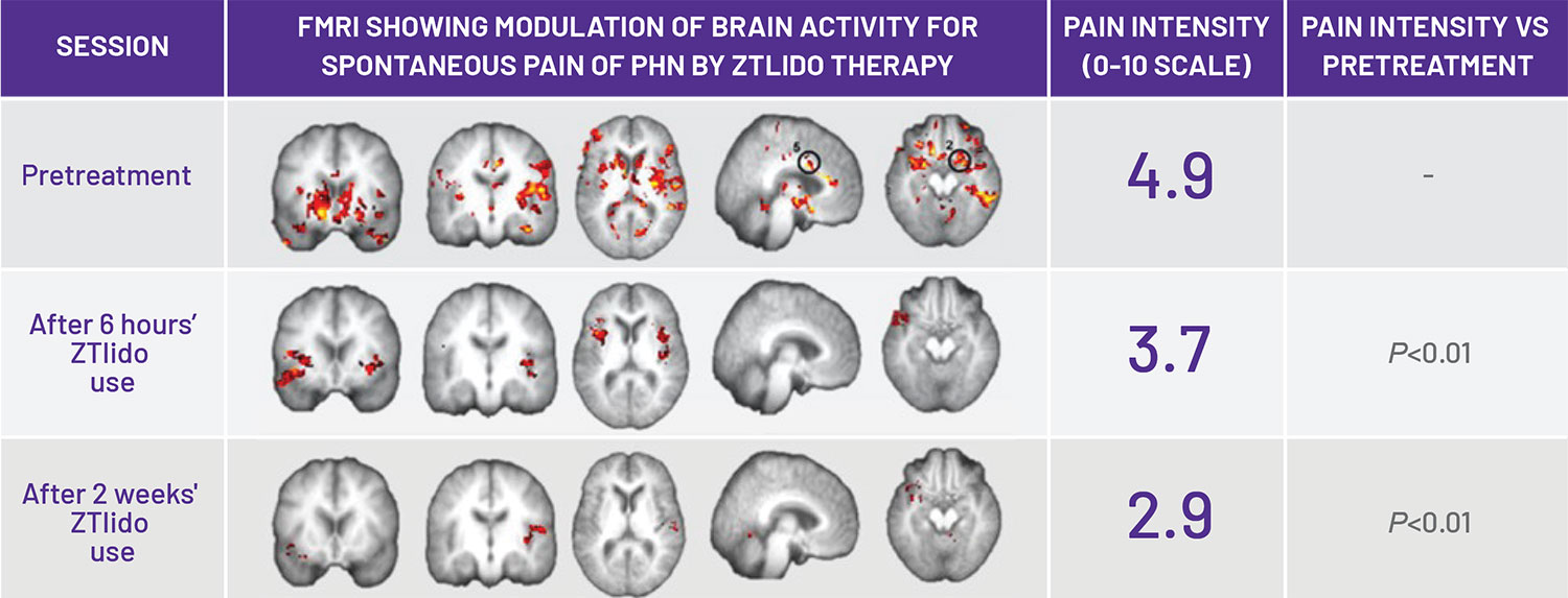 Objective proof from fMRI that ZTlido* significantly decreases pain-related brain activity and intensity†